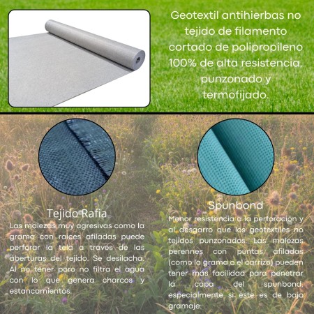 La membrane de sol FLORATEX GARDEN possède une structure poreuse qui permet à l'air, à l'eau et aux nutriments liquides d'atteindre les racines des plantes tout en empêchant la pousse des mauvaises herbes.